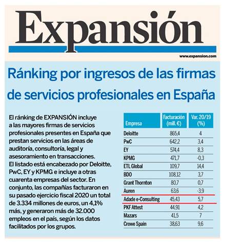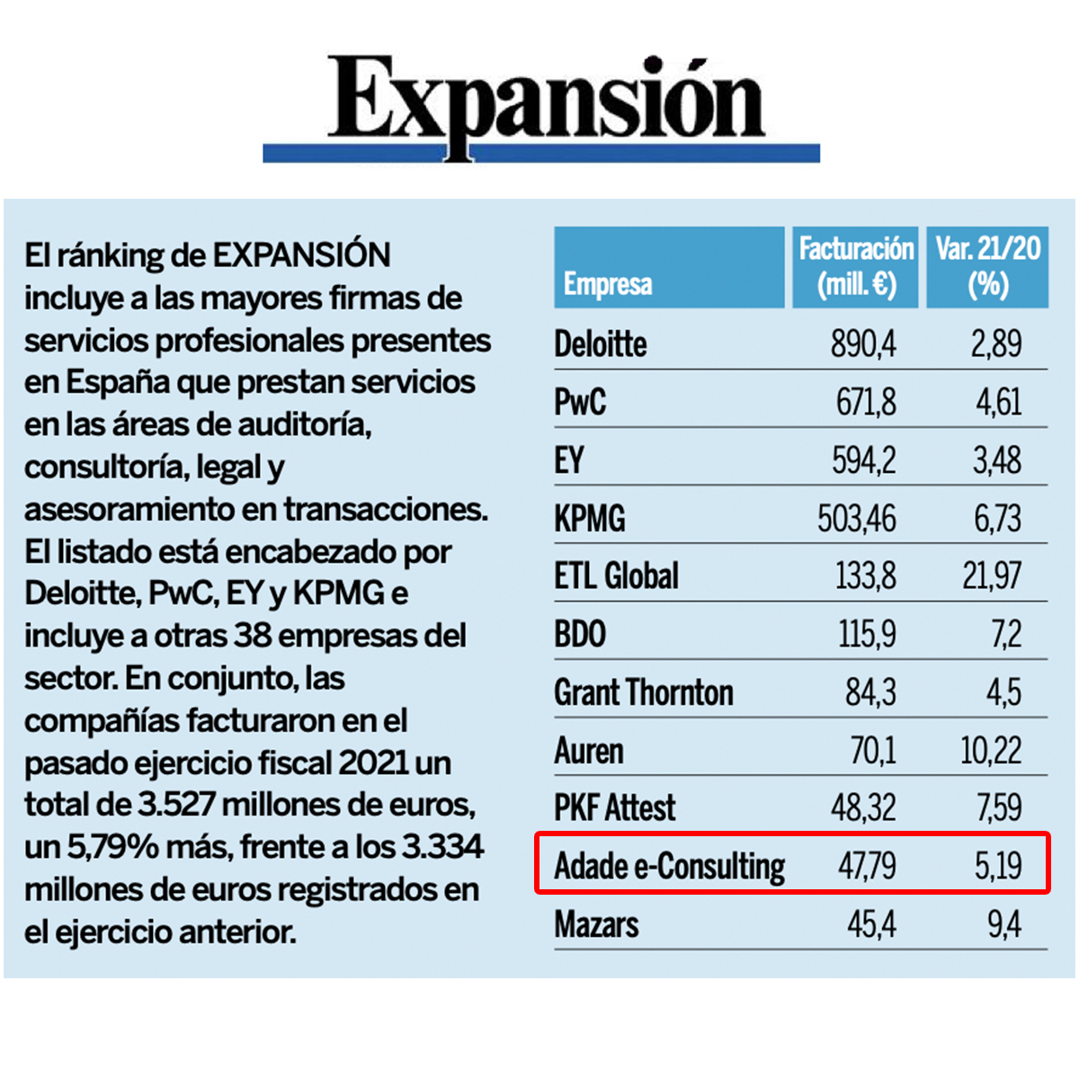 En el Grupo Asesor ADADE somos fieles creyentes de que una cifra vale más que mil palabras. Algunos de nuestros logros han estado consolidarnos en el noveno puesto en el ranking nacional de Asesorías y Auditorías, y de las primeras con capital totalmente español.